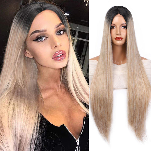 AISI HAIR Long Straight Black Wig Synthetic Wigs for Women Natural Middle Part Lace Wig Heat Resistant Fiber Natural Looking Wig